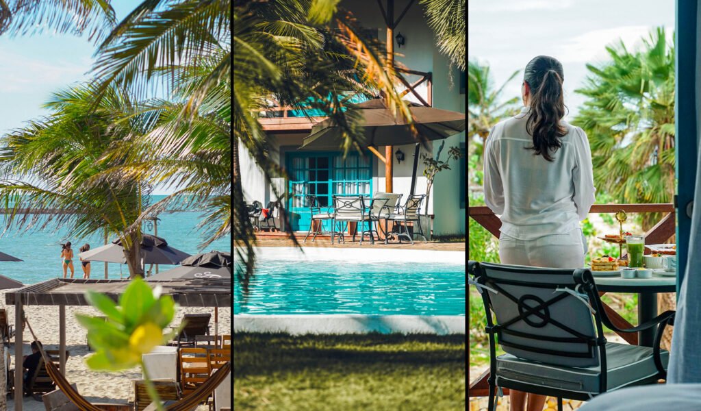 Folhas de palmeiras e carnaúbas dançam um balé perfeito ao ritmo do vento forte do litoral. Jasmins e primaveras de todas as cores embelezam os caminhos entre o restaurante, o bar de praia e a pousada. Passarinhos, corujas diurnas e borboletas pequeninas capturam a atenção até dos mais distraídos.